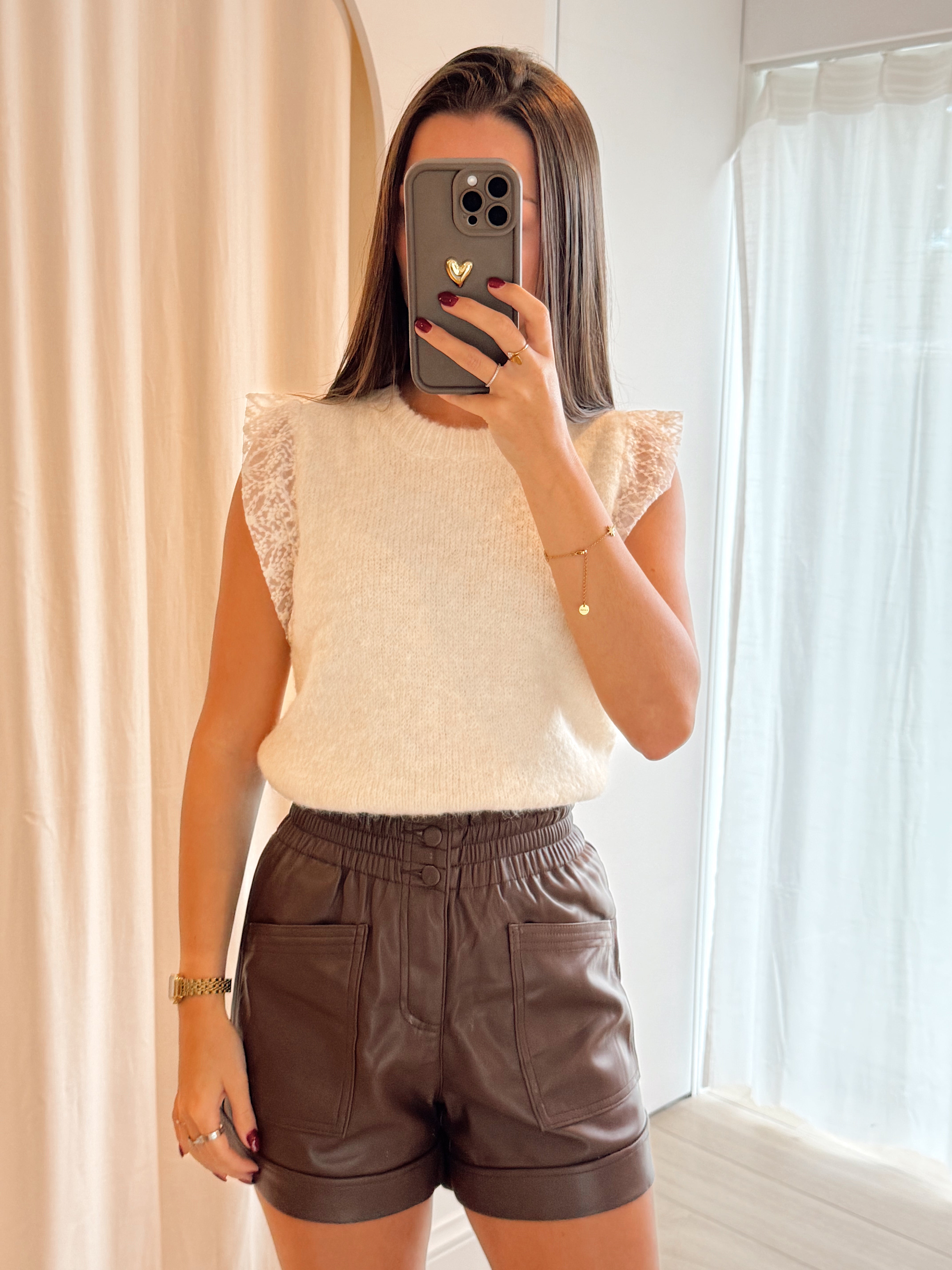 Brown leather short