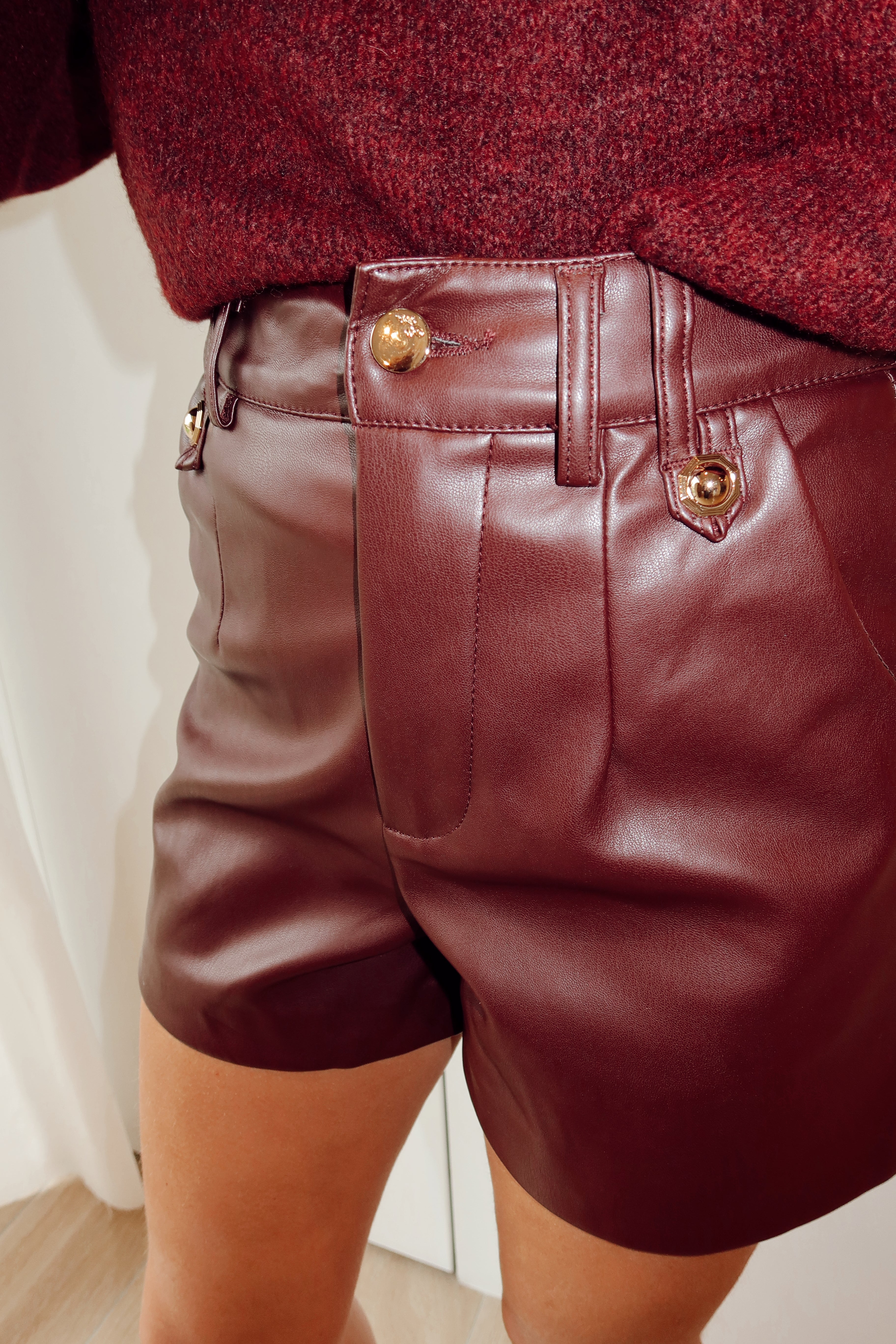 Burgundy leather short